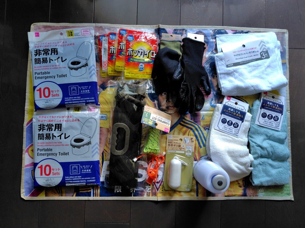 以上ざっと27品目 玄関近くの納戸に置いて有事の際はすぐ持ち出せるよう準備