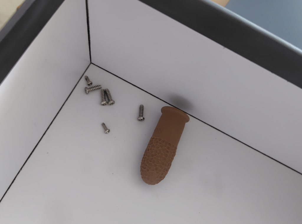 お時計ちゃんをバラバラにしてしまっていた白いBOXには基盤を固定するためのねじが数本残っていた